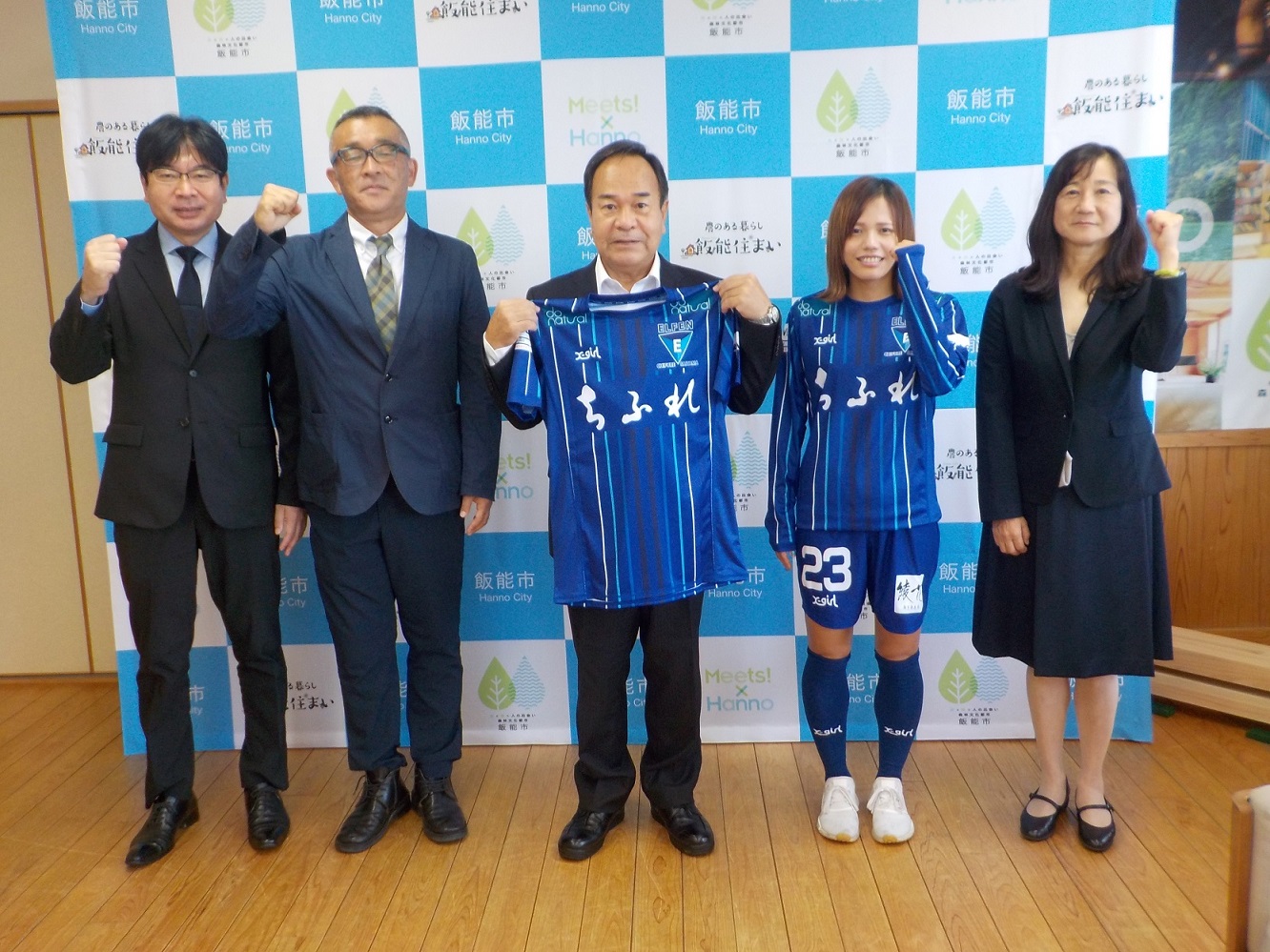 9月12日(日曜日)のWEリーグ開幕に当たり、「ちふれASエルフェン埼玉」の宮内聡 代表取締役会長、田村貢 代表取締役社長、半田悦子 監督、中村ゆしか選手が市役所を訪問してくださいました。