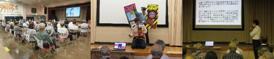 高齢者を狙った特殊詐欺事件や自転車・自動車運転の交通事故の被害を防ぐため、高齢者学級を開催しました。